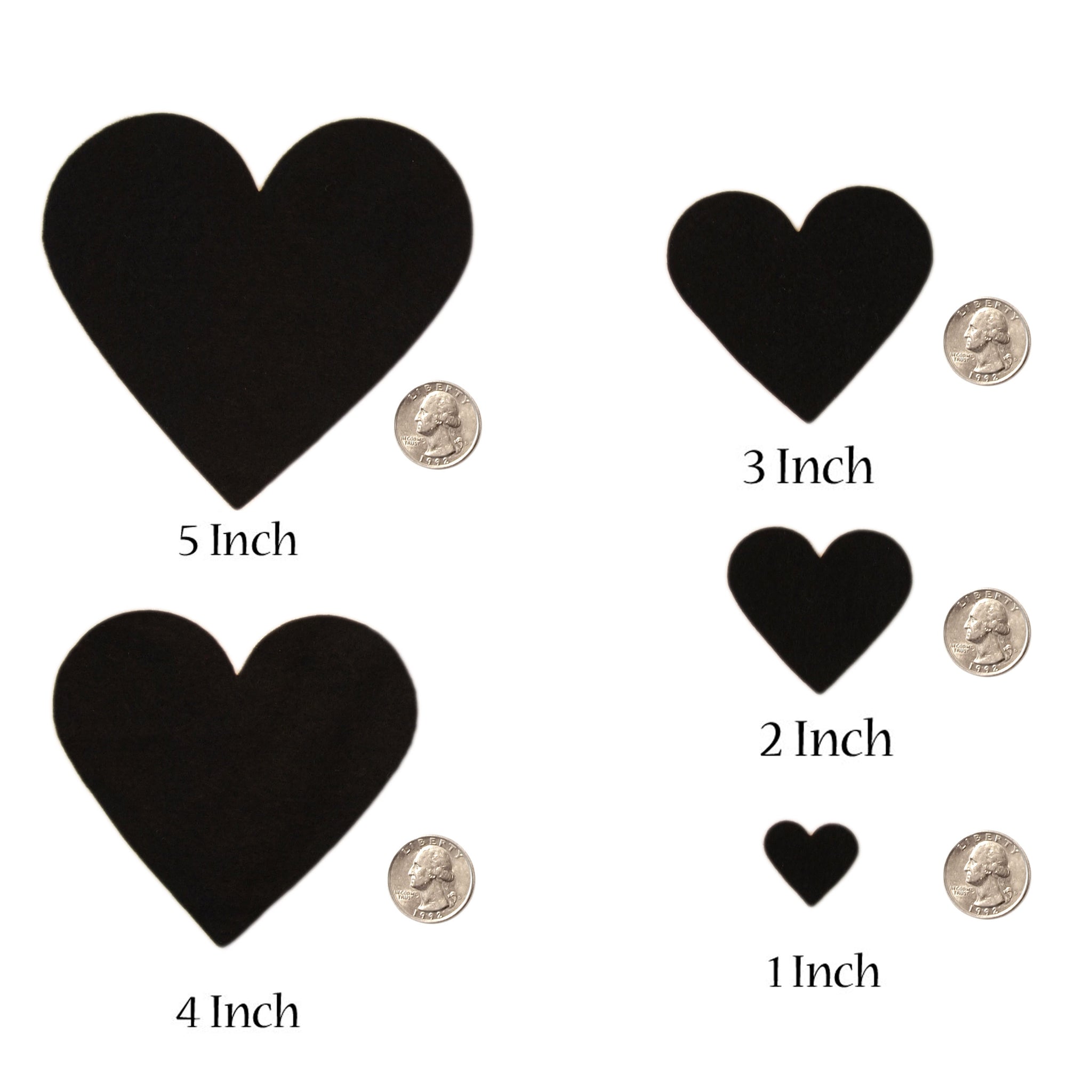 These felt hearts are perfect for your next craft project. Express your creativity by turning them into intricate flowers, using them to back hairbows and clips, scrapbooking, costumes, quiet books or colorful smiley faces. These felt hearts can be sewn or glued (hot glue works best) for your next project. Perfect cuts to save you time from cutting them by hand (let us do that for you!)